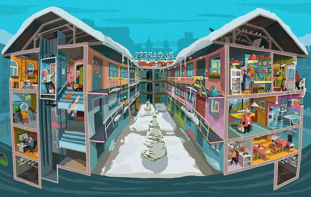 Szeretnéd látni, milyen, amikor Budapest jellegzetes bérházai, épületei bekerülnek a színes és határtalan mesevilágba? Megnéznéd az utca emberét, amikor nyakon öntik gyermeki képzelőerővel? Akkor neked a Madách Imre út 8-ban a helyed, itt található ugyanis a Telep. Ha felmerészkedsz az emeletre, megtekintheted Vidák Zsolt illusztrátor és grafikus kiállítását, mely a My little Budapest címet viseli, és július 9-én nyílt meg.