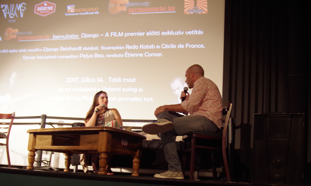 Ennek ellenére is hallhattunk érdekességeket a filmről: az est házigazdája, Kovács András Péter KAP Palya Beával beszélgetett. A Django feleségét alakító magyar énekesnő precíz, odaadó színésznek ismerte meg a címszereplőt alakító Reda Katebet. A forgatás során Stochelo Rosenberg az ujját törte, ami azért abszurd, mert neki kellett feljátszania Django muzsikáit, aki súlyos kézsérüléssel élte le életét. Palya Bea is beleélte magát szerepébe, ugyanis terhes nőt alakított, a forgatás végén pedig kiderült, hogy valóban állapotos.