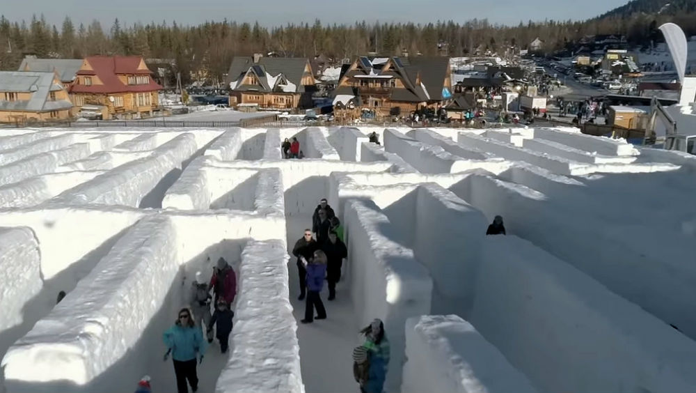 A szlovák-lengyel határtól mindössze 25 kilométerre található a Tátra lengyel oldalán felépített 2500 négyzetméteres hólabirintus, amely a maga nemében a világon a legnagyobb. Eltévedni benne gyerekjáték, kijönni belőle izzasztó feladat. A rendezők biztosítják, hogy zárás után senki nem marad a labirintus falai között. Fotók: noviny.sk