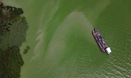 A drónnal készített, több fotóból, számítógépes programmal összeállított panorámaképen a Széleskő-bányató néven is ismert apci tengerszem