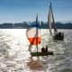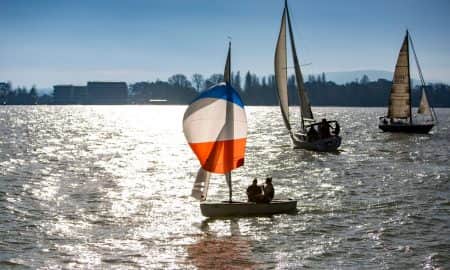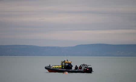 Fürdőzők a Balaton vizében a keszthelyi városi strandon 2022. augusztus 5-én. MTI/Varga György