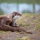 A Duna a Margitsziget déli csúcsánál, a Margit híd szigeti bejárója alatt 2022. augusztus 15-én. A folyó vízállása Budapestnél 78 centiméter.
